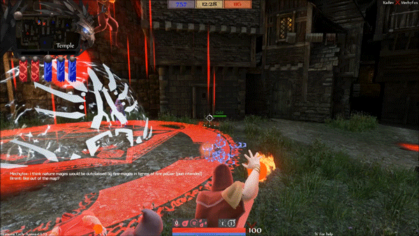 Players are divided into two teams: Validus (Blue) and Mangus (Red) and fight for control over powerful magic ley-lines which when controlled serve as a teleport back into battle.Every player starts in a basic spawn room and then can enter the map by traveling through the teleporter which takes you to the ley-line (control point) closest to the central point which your team controls.